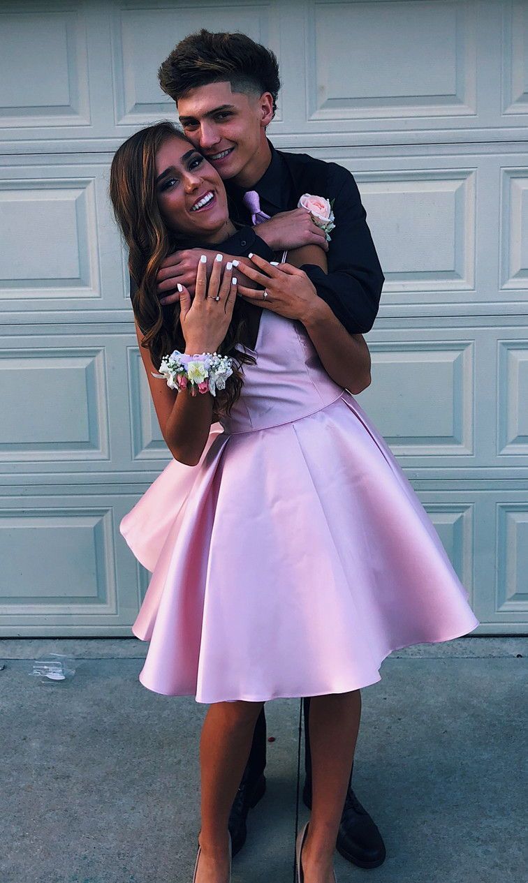 WD0066,Pink A line Homecoming Dresses,V neck Homecoming Prom Dress