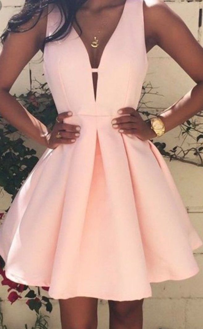 WD0102,A-Line Deep V-Neck Sleeveless Pearl Pink Homecoming Dresses With V-Back,Cute homecoming dresses