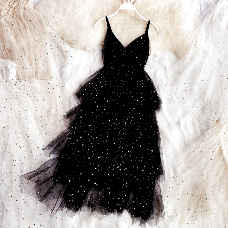 WD0193,Sparkle Black Prom Dresses,Layered Tulle Homecoming Dress,V neck Homecoming Gown