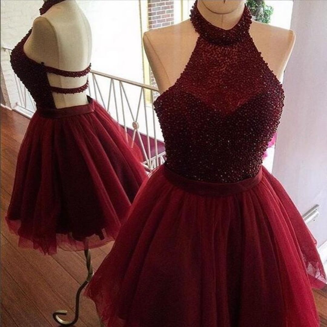 WD0215,Sexy Prom Dress,Burgundy Prom Dress,Short Homecoming Dress,Beading Prom Dress