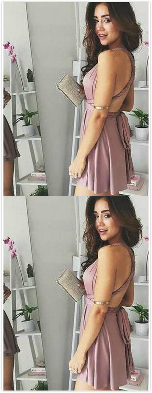 WD0491,A Line Elastic Short Blush Deep V-Neck Satin Homecoming Dress