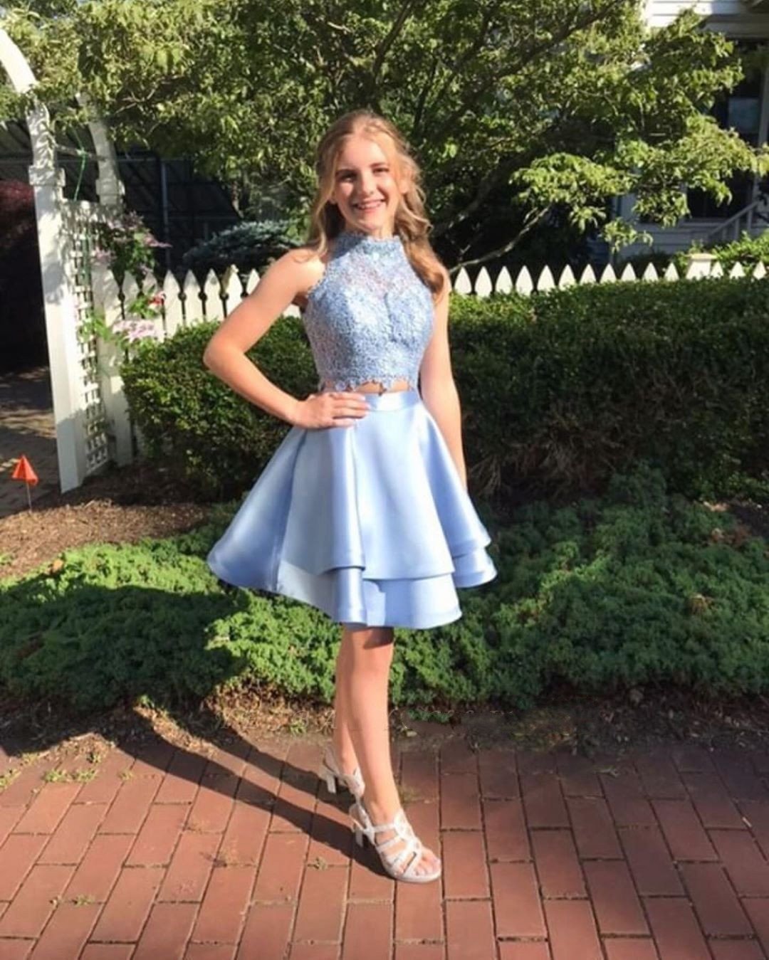 WD0634,Two piece short homecoming dresses,light sky blue formal short dresses,a line hoco dresses