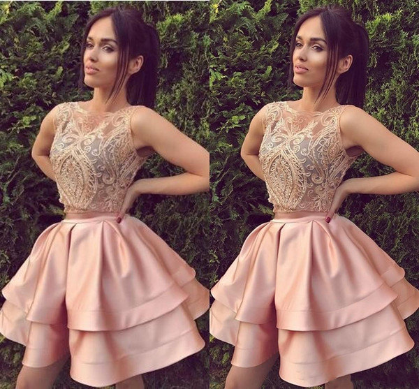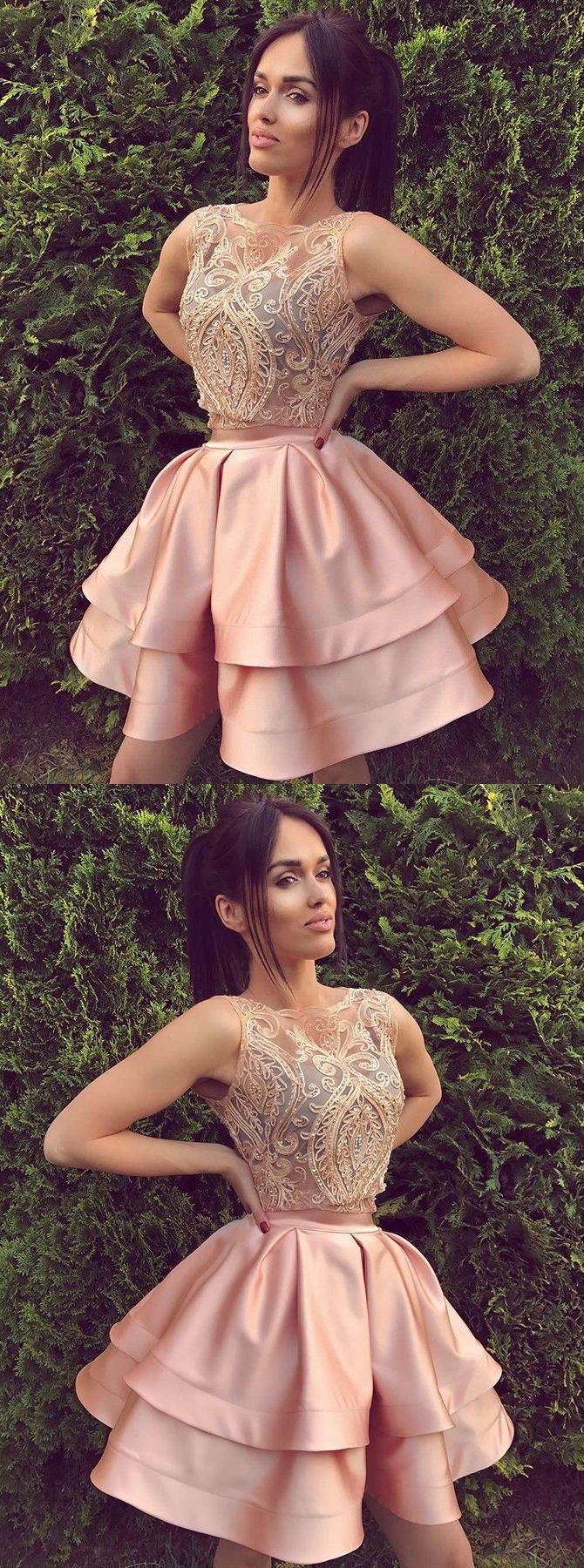 WD0638,Pink Tow Pieces Short Prom Dress,Cute Pink Homecoming Dress
