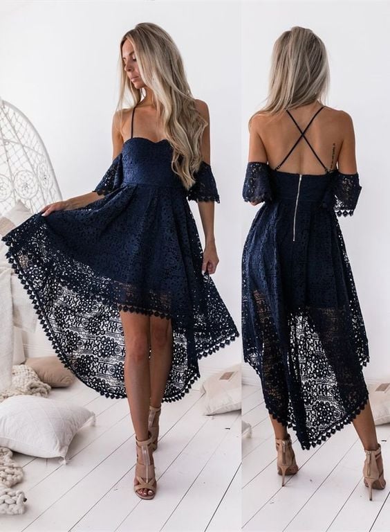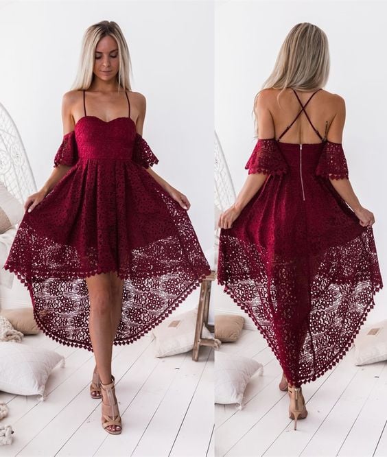 WD0707,Cute Sweetheart White Lace High Low Prom Dresses