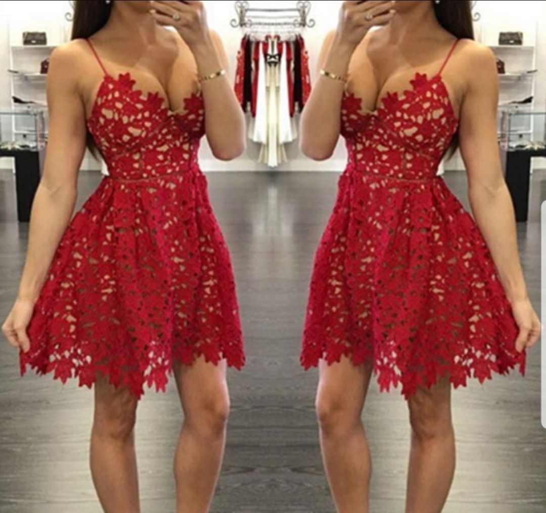 WD0716,Cute A Line V Neck Spaghetti Straps White Lace Short Homecoming Dresses