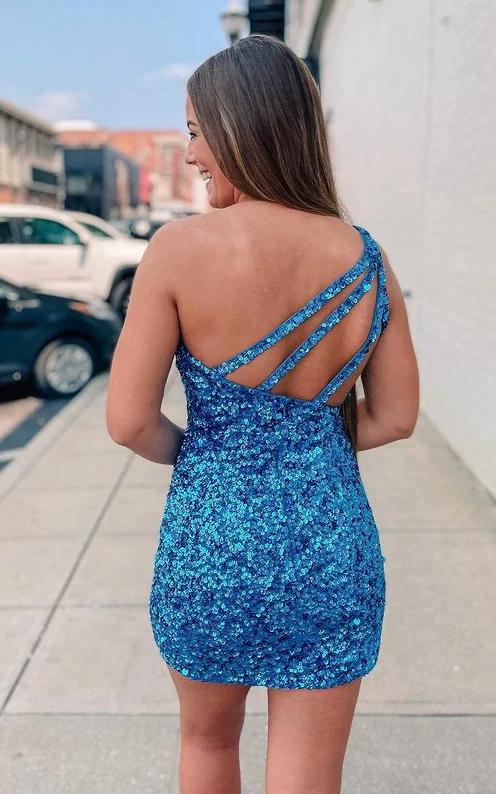 WD1168,Charming blue sequin homecoming dresses,one shoulder mini prom dress