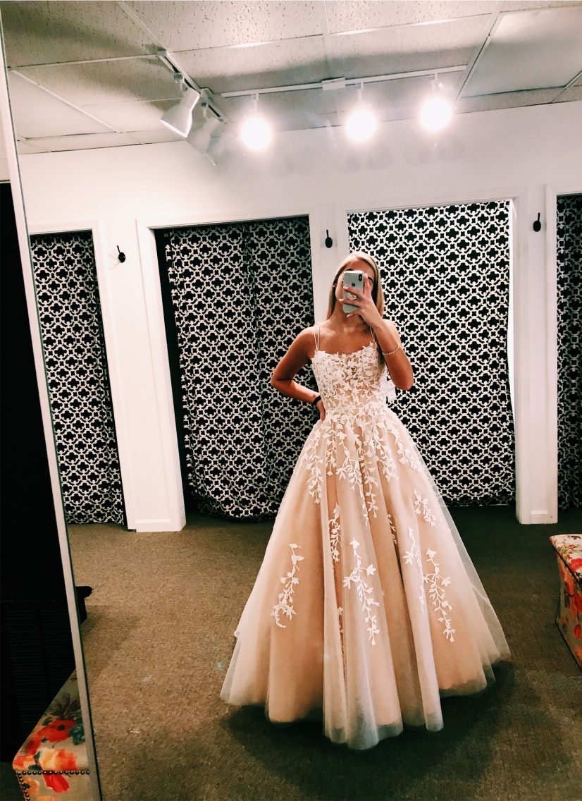 WD0088,Champagne A line Long Prom Dresses,Lace Applique Tulle Evening Dresses,Formal Gown