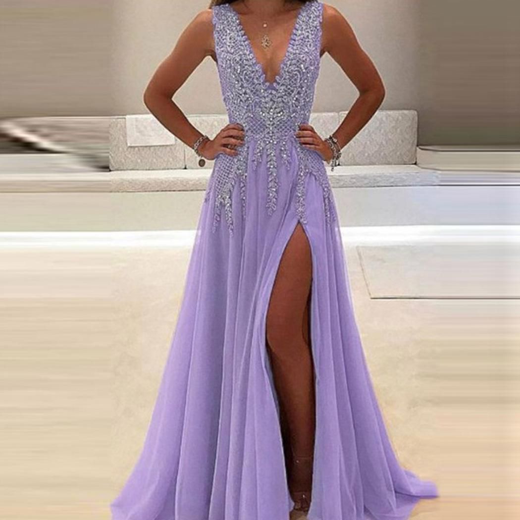 WD0108,Luxury beaded prom dresses,chiffon v neck long evening dress,floor length party evening dresses