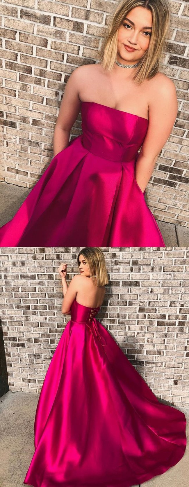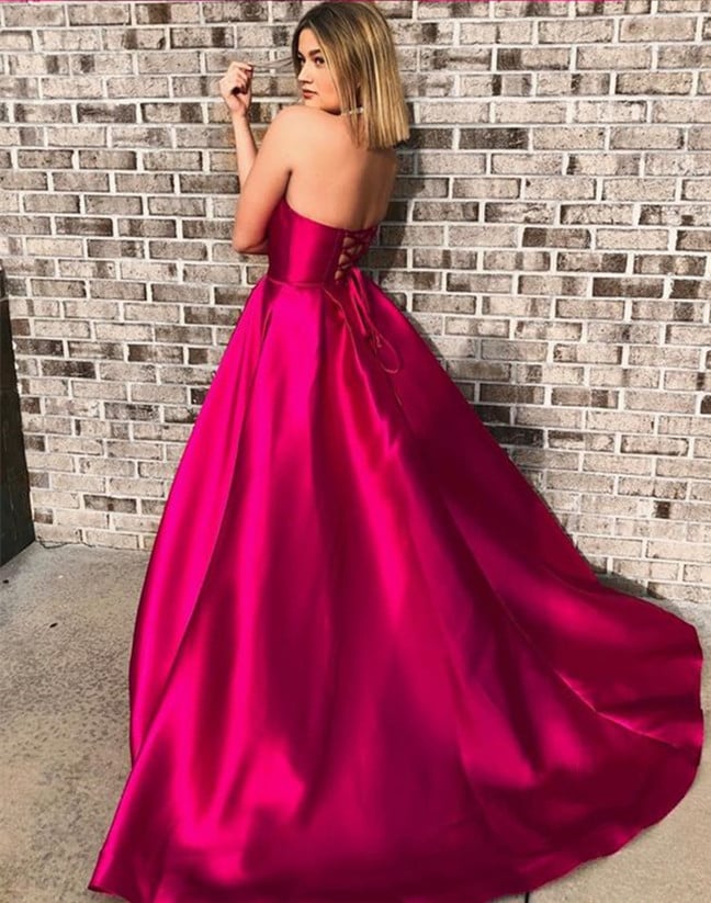 WD0133,Hot pink prom dresses,strapless a line evening dress long party gown
