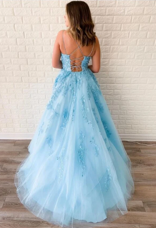 WD0256,New Style Amazing Light Blue Prom Dress With Lace,Graduation School Party Gown