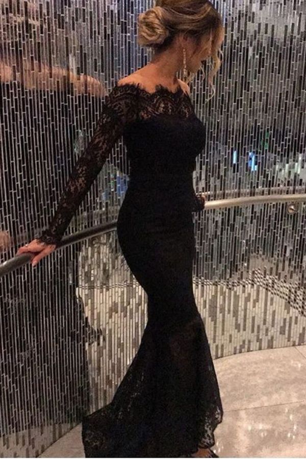 WD0441,Off Shoulder Long Sleeves Lace Prom Dress,Cheap Evening Dress