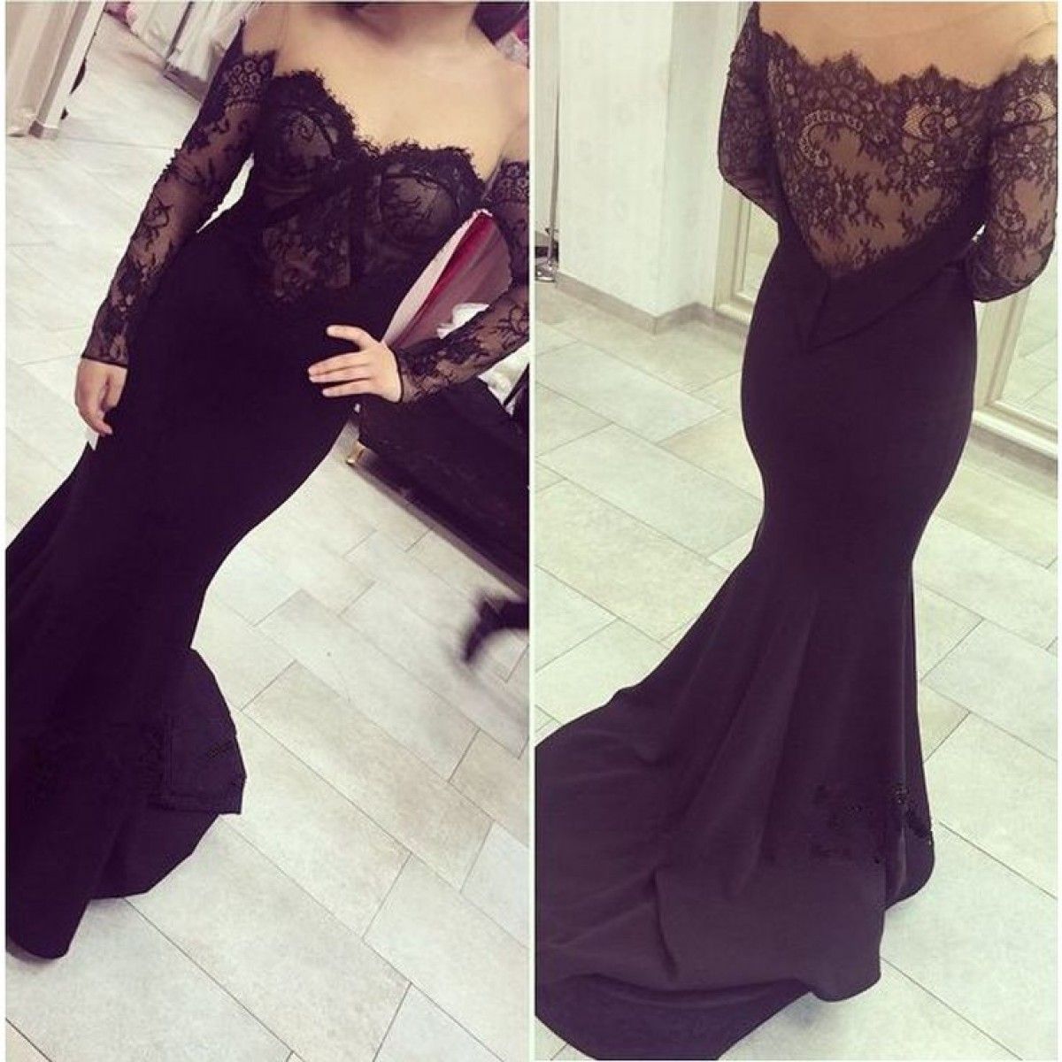 WD0478,Custom Made Charming Black Prom Dress,Lace Evening Dress,Long Sleeves Party Dress