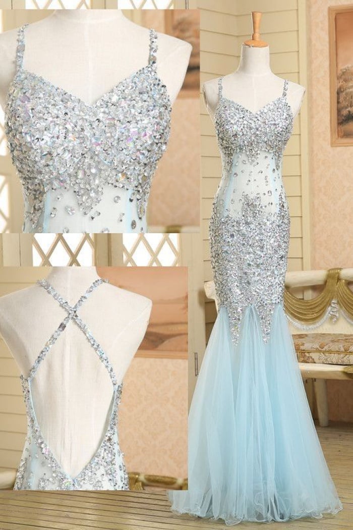 WD0487,Sexy V-neck Backless Mermaid Tulle Handmade Sequins Prom Dresses,Formal Dresses,Beading Evening Dresses