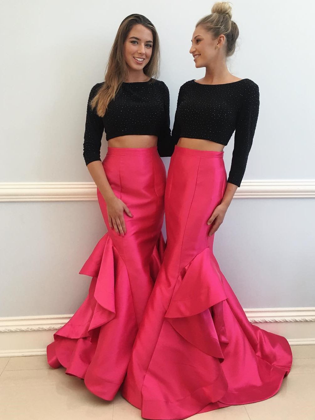 WD0549,Black Long Sleeve Two Piece Mermaid Prom Dress Crop Top Formal Evening Dresses Custom Plus Size Party Gowns