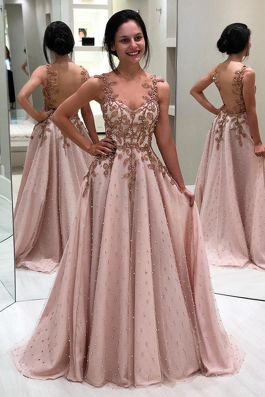 WD0624,Elegant Appliques Beaded Sleeveless Backless A-Line Prom Dresses
