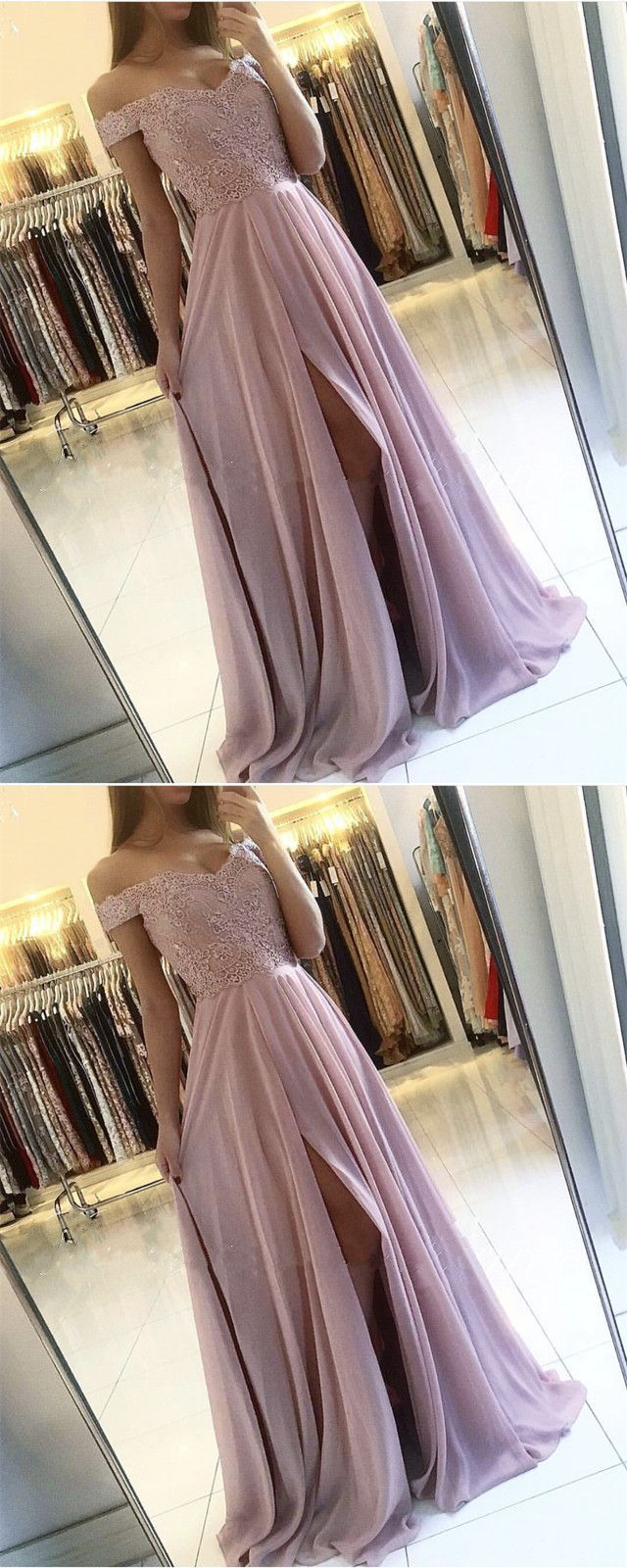WD0687,Off Shoulder A Line Prom Dresses with Appliques,Front Slit Formal Evening Dress