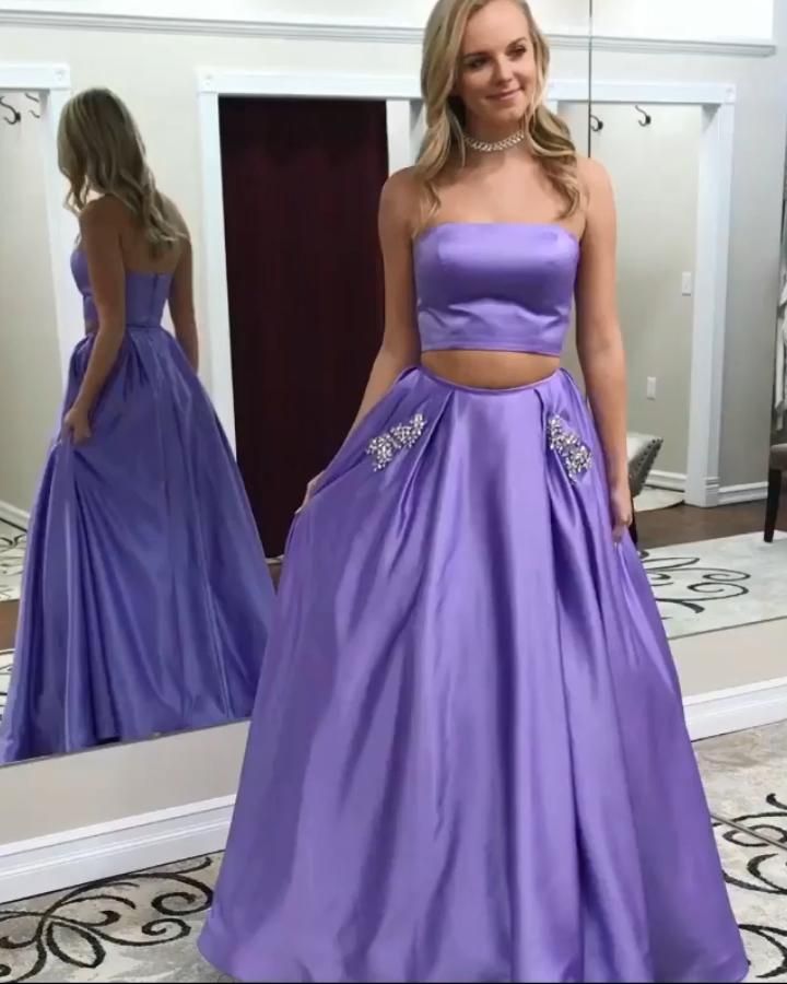 WD0867,Charming purple two pieces prom evening dresses with beaded pockets