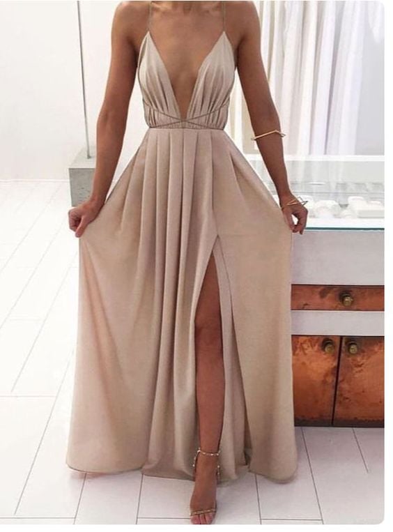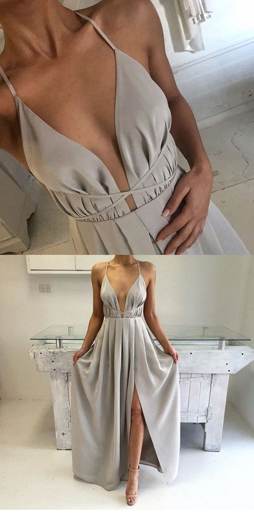WD0898,Light Grey Sheath V-neck Prom Dresses,Halter Chiffon Evening Dress