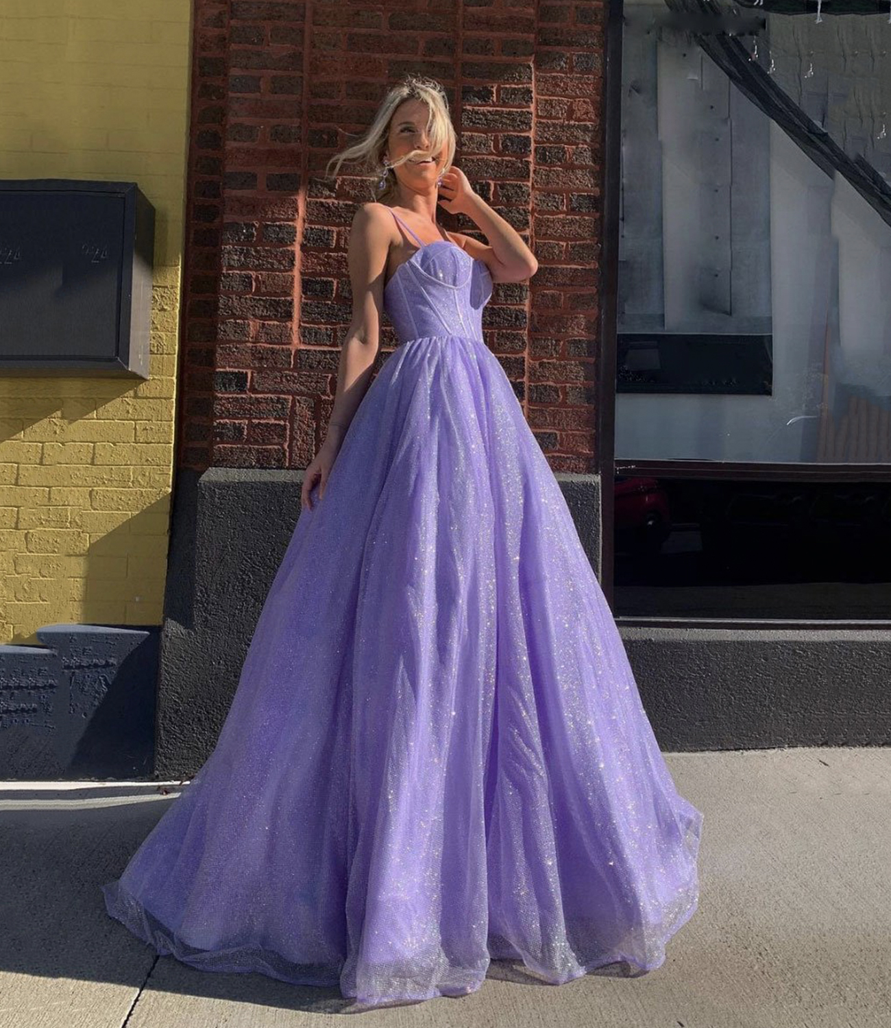 WD0906,Lilac Spaghetti Straps Prom Dress,Sparkle A-Line Prom Evening Gown