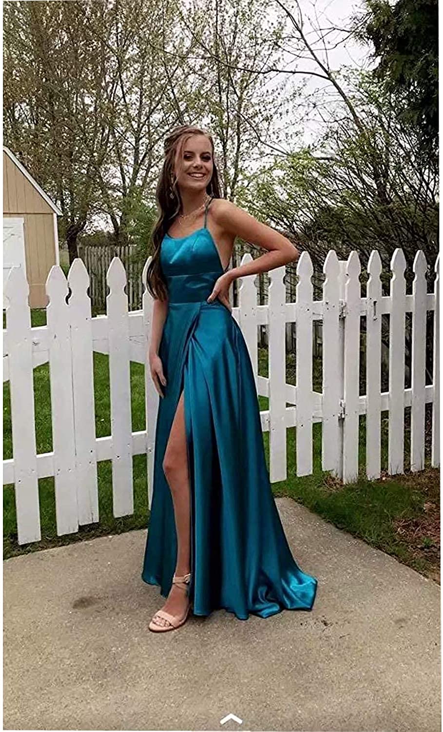 WD0954,Spaghetti Straps Halter Blue Split Prom Dress,Floor Length Evening Gown