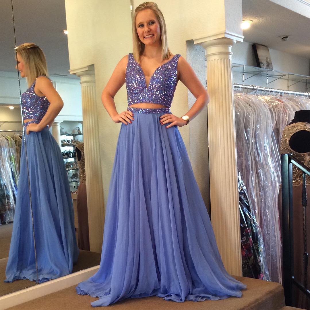 WD0991,Purple two pieces beaded chiffon prom evening dresses