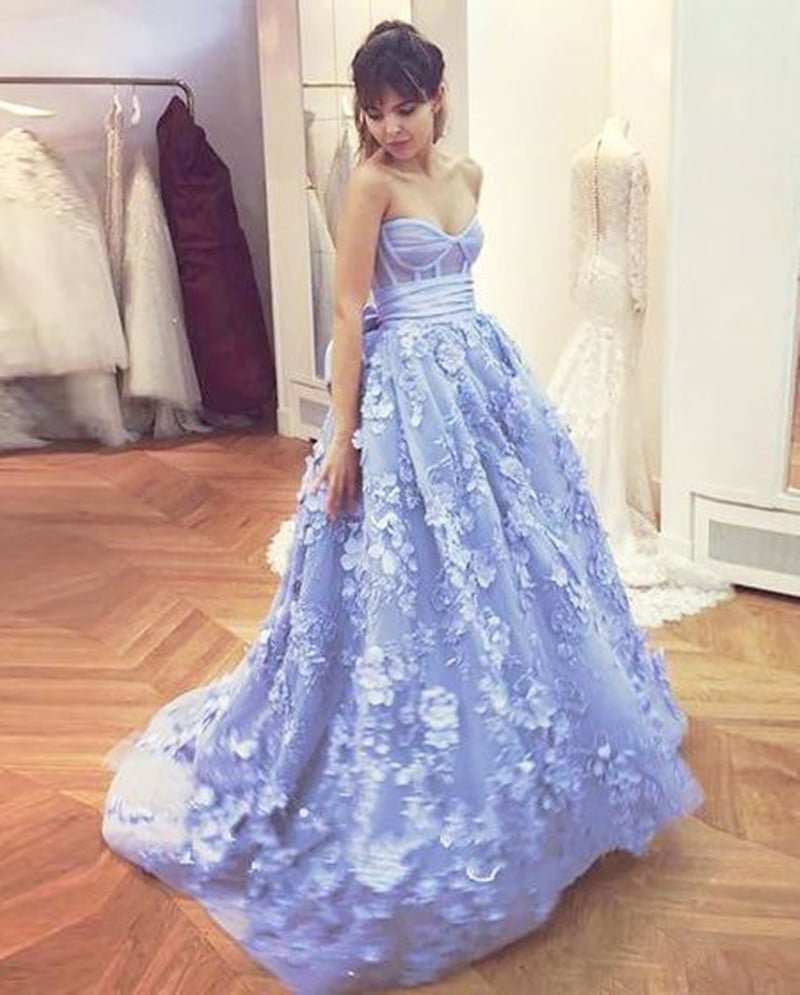 WD1004,Purple sweetheart 3D floral ball gown long prom dresses