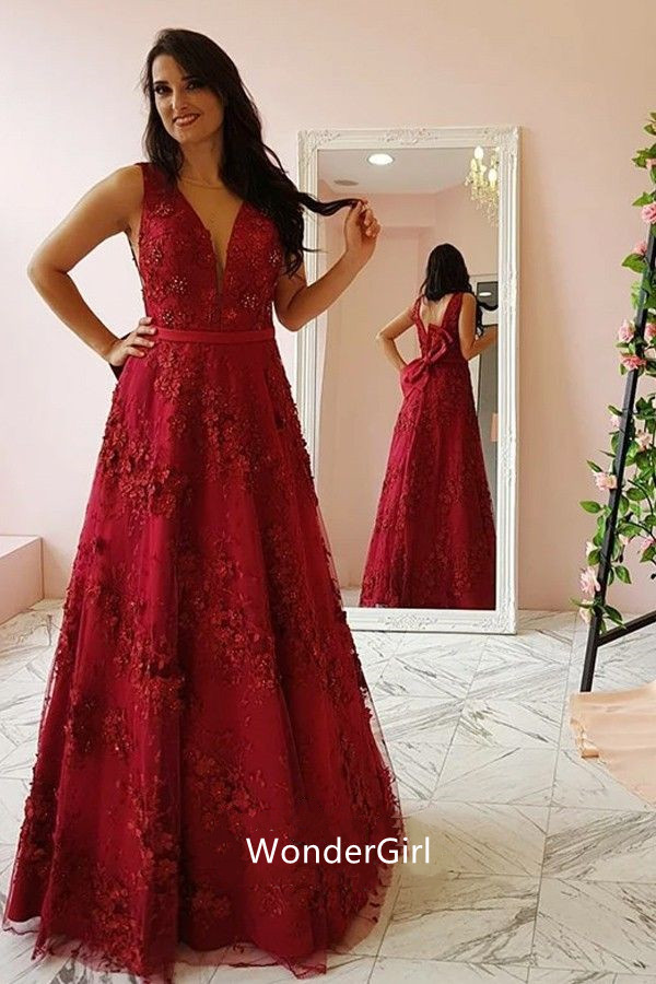 WD1022,Red A-Line Applique Beaded Prom Dresses,Red Prom Dress,A-Line Evening Dresses