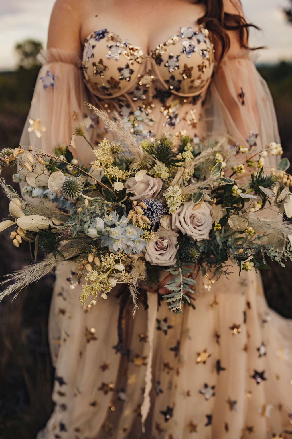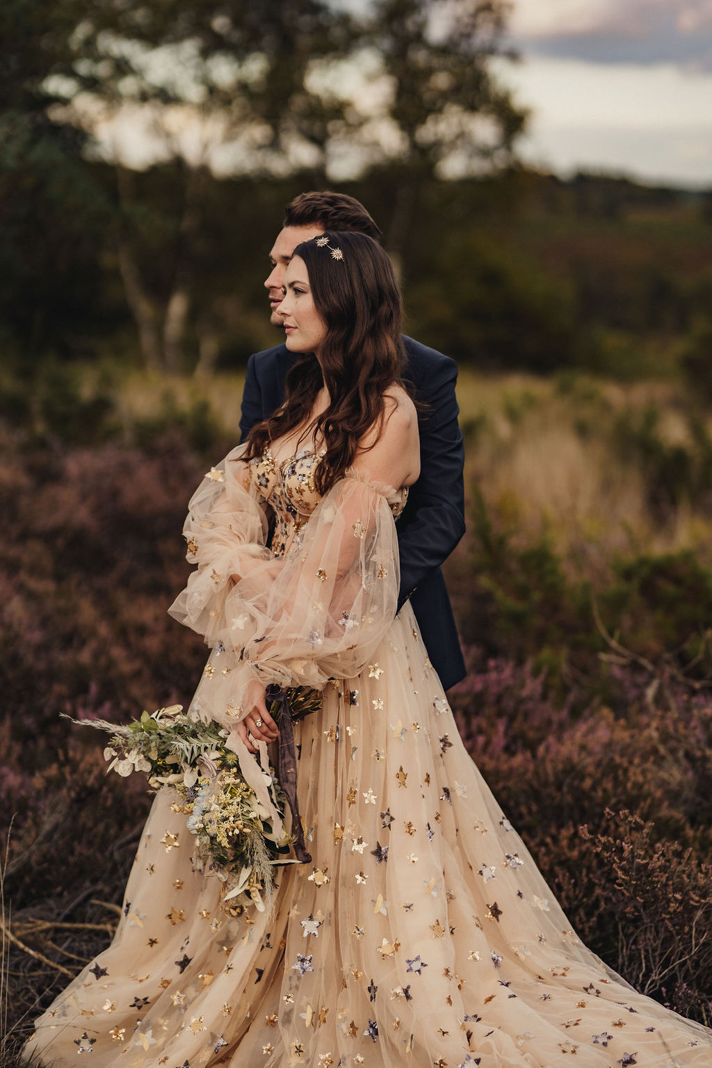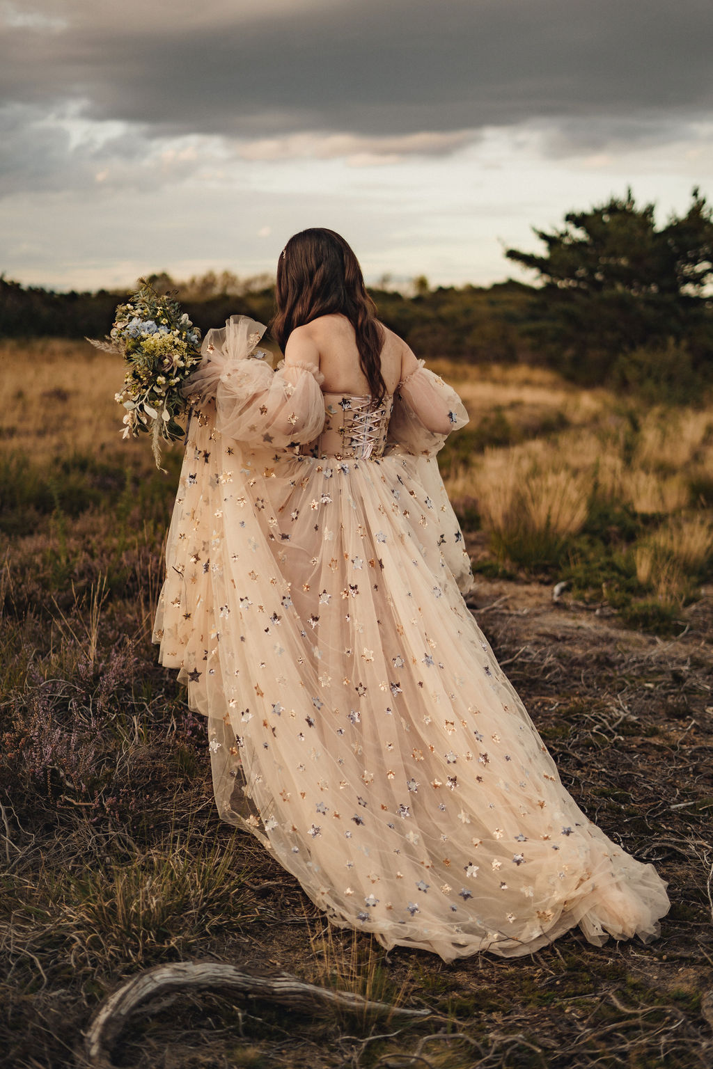 WD1081,Champagne tulle starry prom dresses,bubble sleeves evening dress,stars a-line prom dress