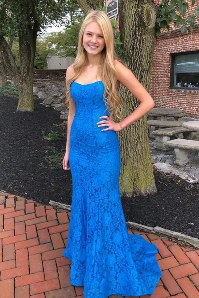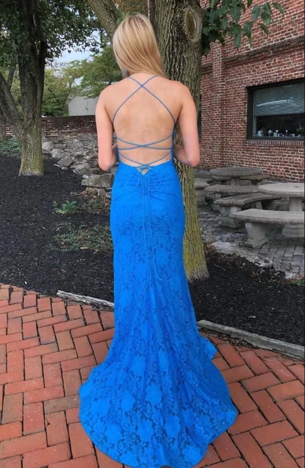 WD1100,Blue lace mermaid prom dresses long evening party dress