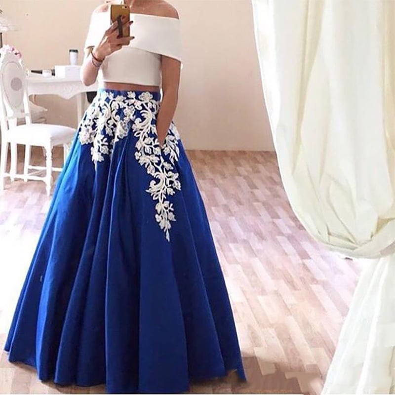 WD1102,Off the shoulder prom dress,two pieces evening dress,applique a line formal party dresses