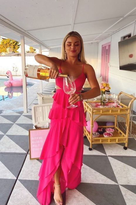 WD1139,Cheap prom dress,spaghetti straps evening dress,hot pink prom dresses,hi-lo long graduation dress