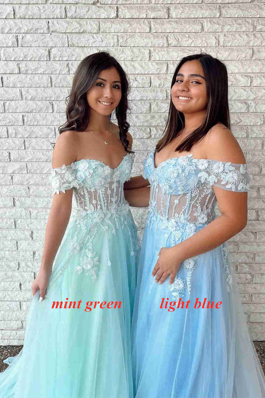 WD1195,Stunning Mint Green Tulle Prom Dresses,Off The Shoulder Evening Gown