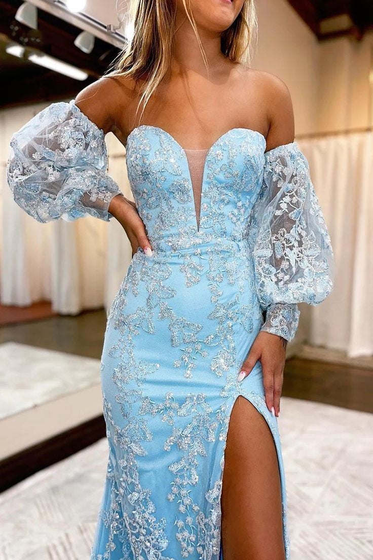 WD1213,Cute Mermaid Sweetheart Sequins Lace Long Prom Dresses with Slit