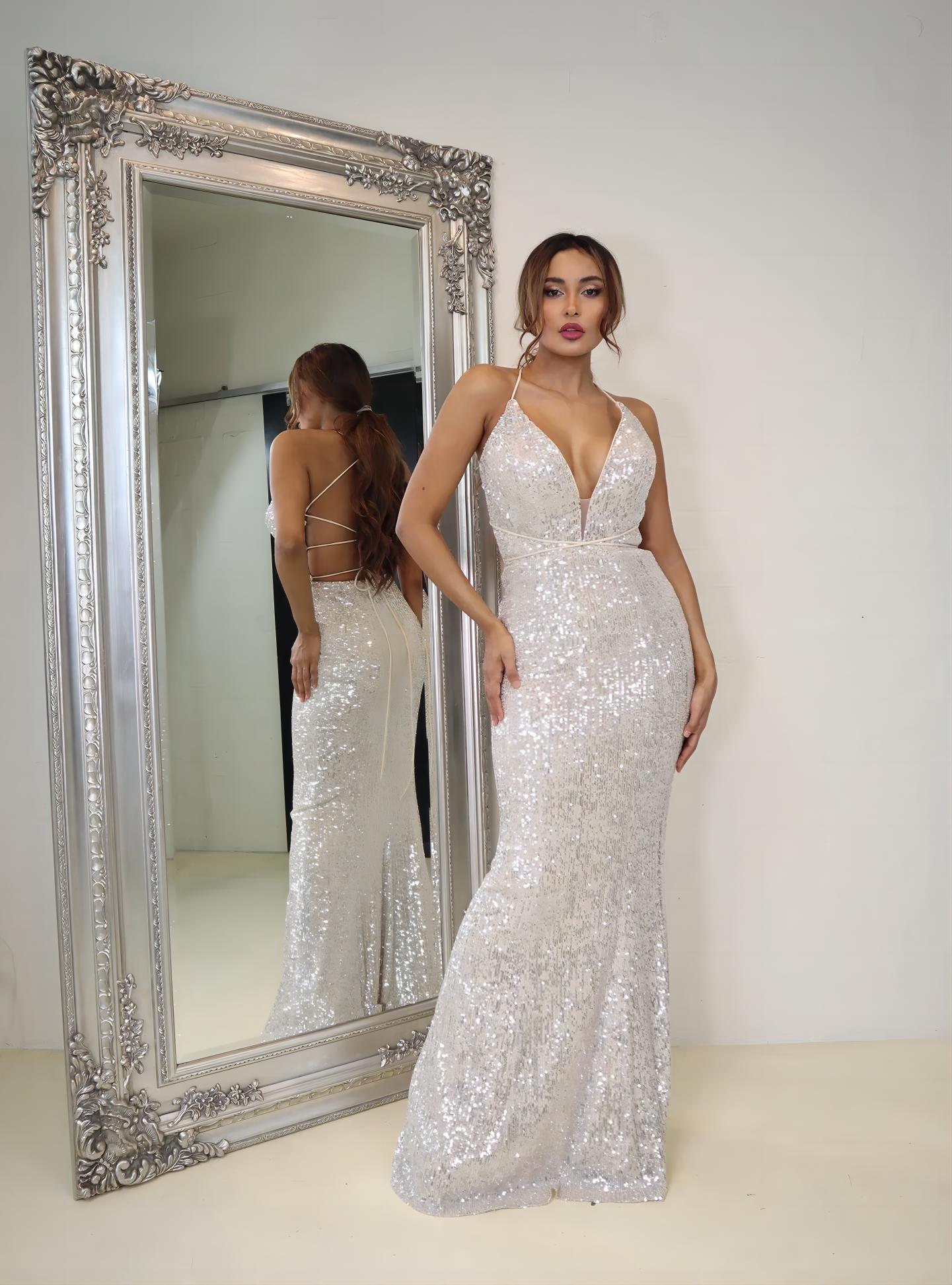 WD1214,Sparkle White Sequin Bodycon Long Prom Dresses, Sexy Corset Back Evening Gown