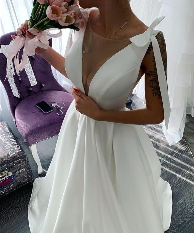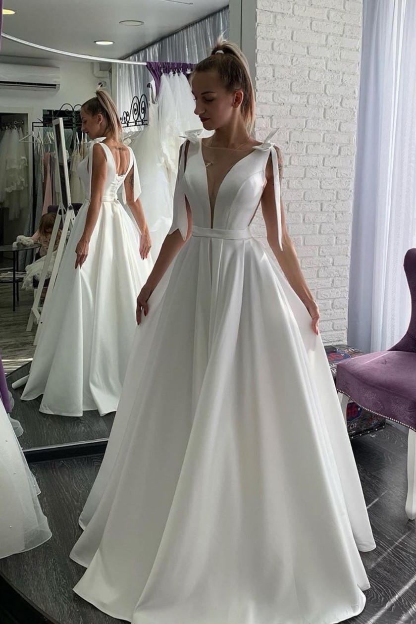 WD0578,Simple White Satin A Line Wedding Dress Sexy Open Back Women Custom Bridal Gowns