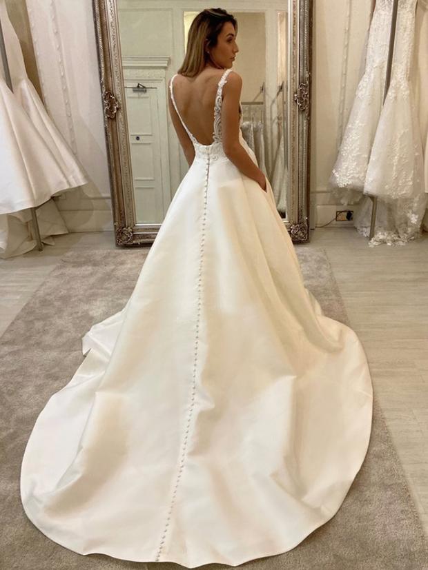 WD0740,Gorgeous Ball Gown V Neck Open Back Lace Wedding Dresses,Elegant Wedding Dresses with Button