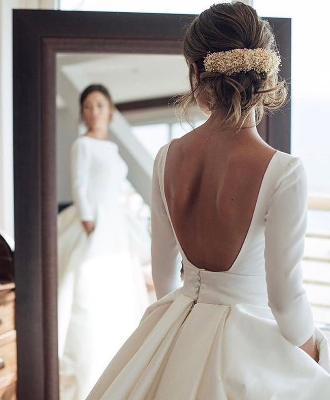 WD0767,Retro Ball Gown Round Neck 3/4 Sleeves Satin Wedding Dresses