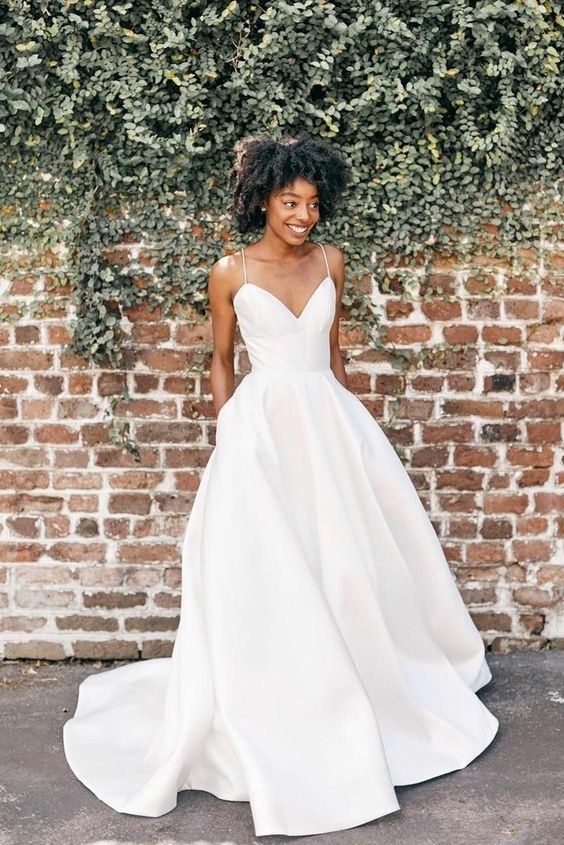 WD0817,High Quality White Satin Wedding Gown,A line Wedding Dresses,Spaghetti Straps V neck Bridal Dresses