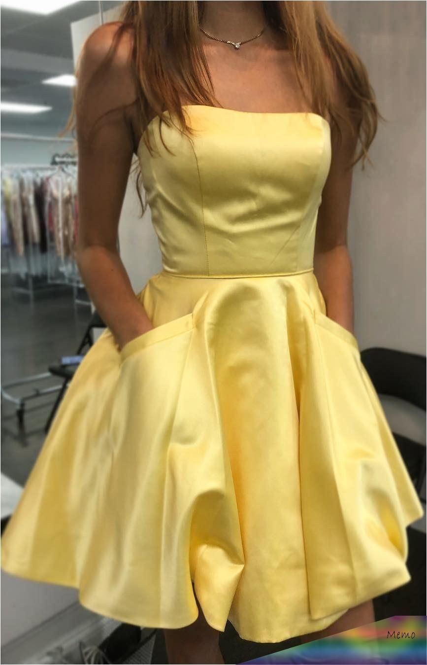 WD0077,Short Round Neck Yellow Homecoming Dress Satin with Pockets