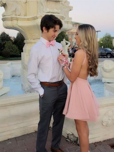 WD0715,Cute A Line Spaghetti Straps Open Back Short Homecoming Dresses,Blush Pink Short Dresses