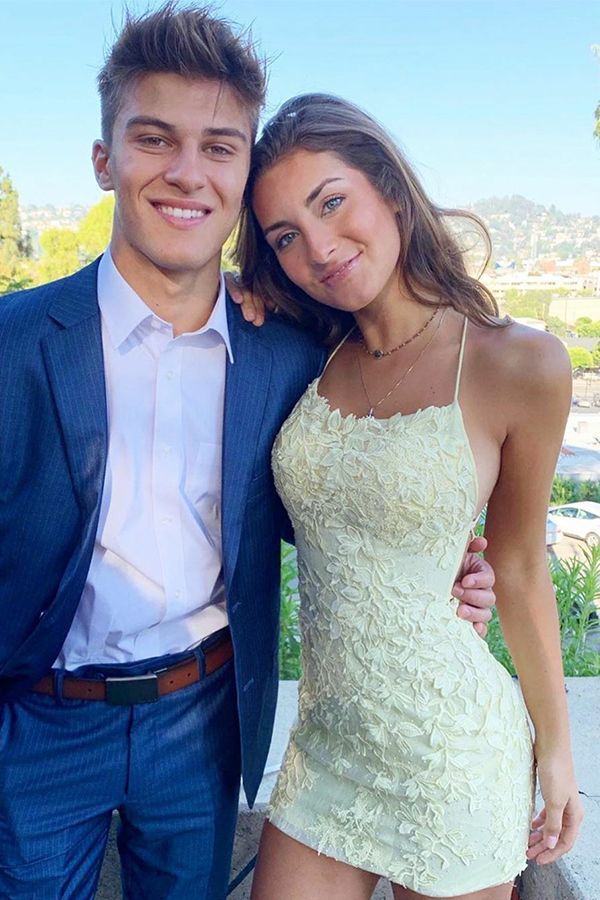 WD0005,Open Back Spaghetti Straps Sheath Lace Short Prom Dress Homecoming Dresses Hoco Gowns