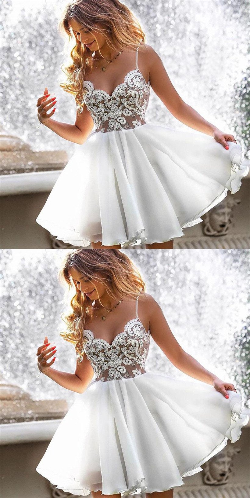 WD0006,A-line Spaghetti Straps Lace Appliques Top Short Homecoming Dress,Chiffon Lace Short Prom Dress,Mini Evening Gown