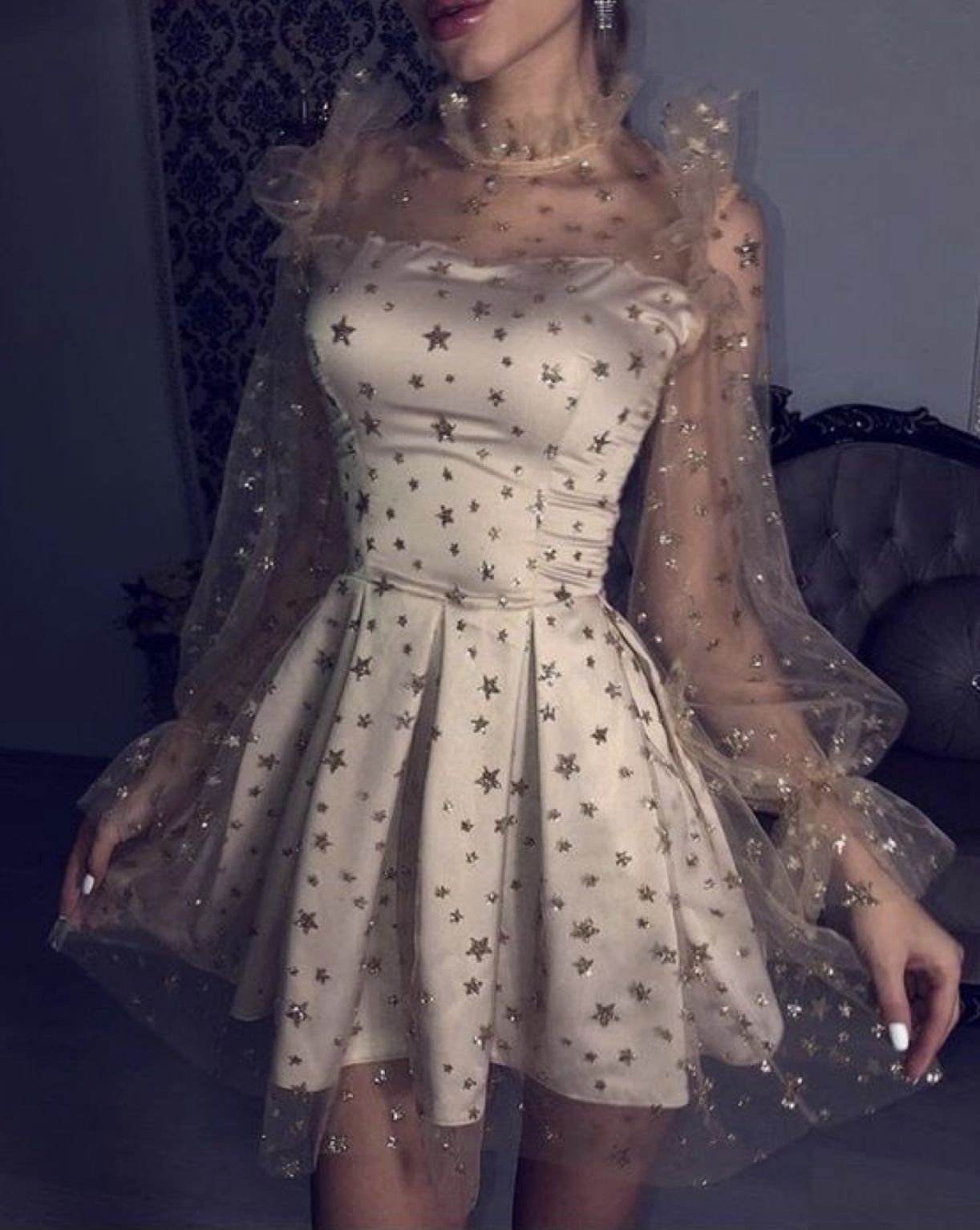 WD0124,Ivory Bubble Sleeves Homecoming Dresses,See Through Long Sleeves Homecoming Dresses,A-line Homecoming Dresses