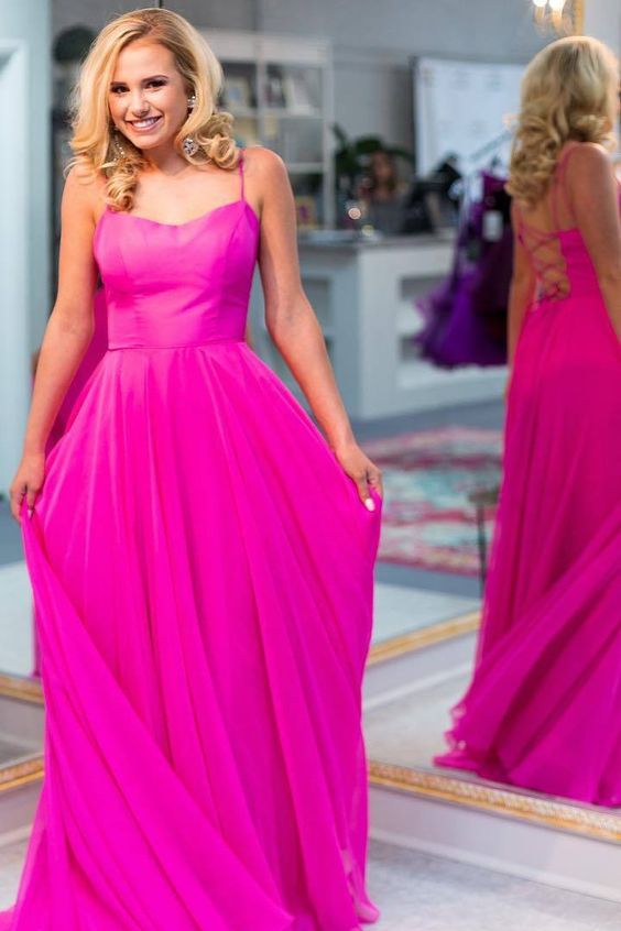 WD0135,Fuchsia Prom Dress Spaghetti Straps Chiffon Long Evening Dresses