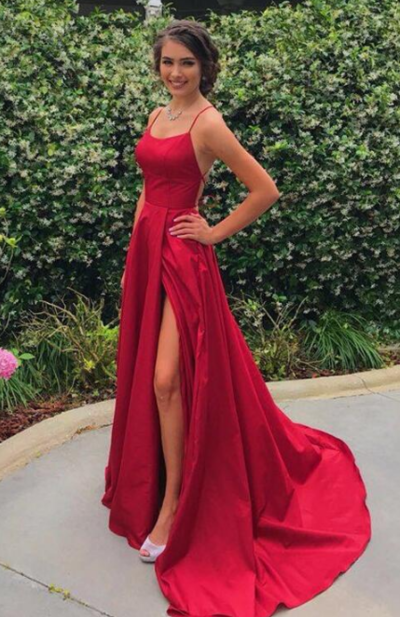 WD0244,Spaghetti Straps Mermaid Red Prom Dress,Sexy Prom Dress with Slit