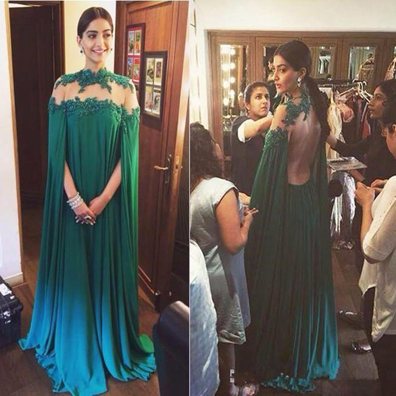 WD0607,Sexy Green A Line Formal Evneing Dress With Cape Appliques Open Back Prom Dresses Long Special Occasion Party Gowns