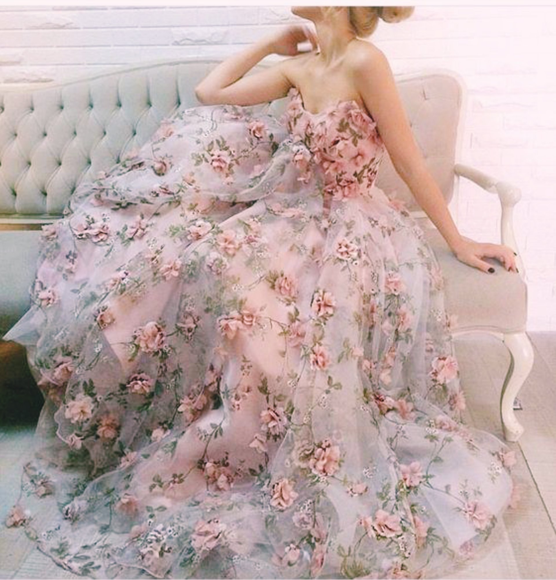 WD0640,New Arrival Pink Floral Prom Dresses,Sweetheart Flower Applique Long Evening Formal Dress