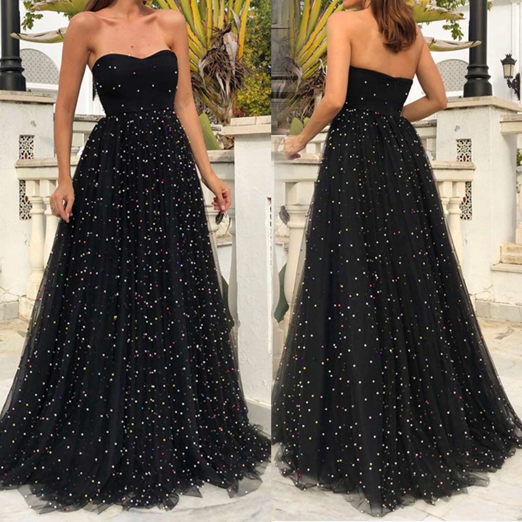 WD0855,Sexy Strapless High Waist Beaded Party Dress,Strapless Tulle Prom Dresses with Colorful Beaded