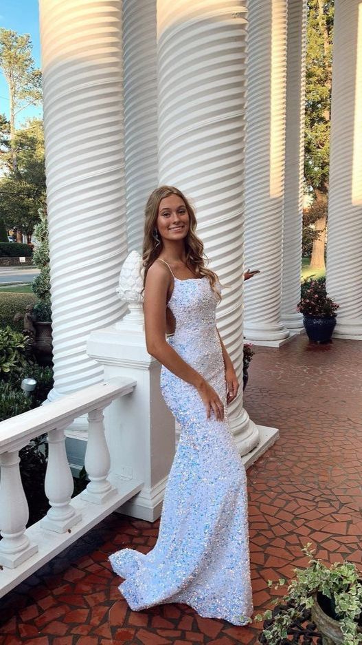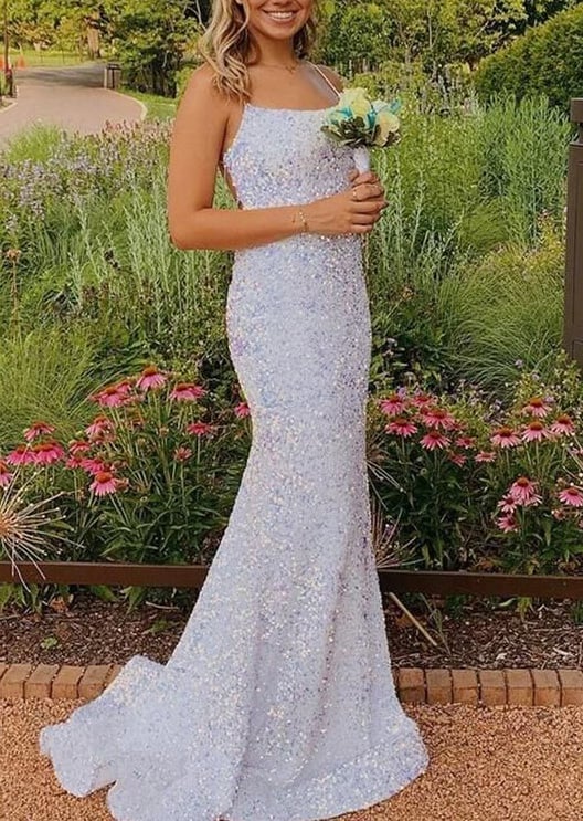 WD0962,White sequin long prom dress,spaghetti straps cross back evening formal gown