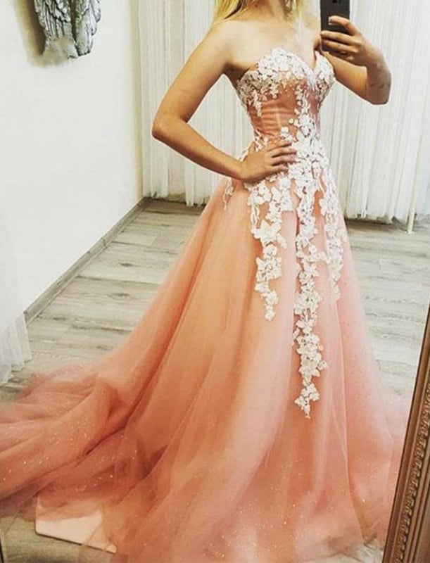 WD0994,Sweetheart tulle ball gown applique long prom evening dresses